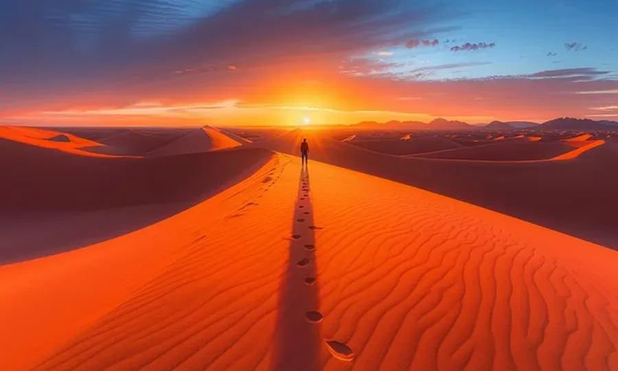 سفری ماجراجویانه به دل کویر دق‌سرخ؛ تجربه‌ای خاص از پیاده‌روی شبانه در میان تپه‌های شنی، تماشای...
